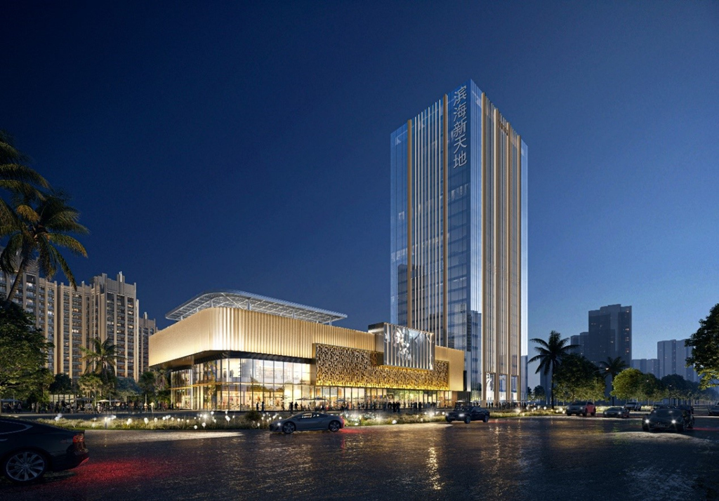 中國電建大灣區(qū)科創(chuàng)中心基地位于廣東省廣州市花都區(qū),是由中電建(廣州)城市投資發(fā)展有限公司投資開發(fā)建設。該項目幕墻形式主要包括玻璃幕墻、鋁板幕墻等,總建筑面積約為62000平方米,幕墻面積38000平方米,建筑高度為162 1米。該項目是一棟超高層辦公樓,建成后將打造成為具備總部基地的地標性建筑。海口濱海新天地商業(yè)綜合體 位于海南省海口市,是由